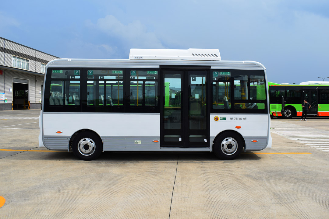 6米公告車(chē)個(gè)性化風(fēng)格設(shè)計(jì),造型新穎,引用熊貓臉特征元素,活潑動(dòng)感,形象更具親和力。邊框、腰線(xiàn)及下裙保留鋁合金色,外觀(guān)質(zhì)感強(qiáng)。搭載高效集成驅(qū)動(dòng)電機(jī)和多合一控制器,采用隧道腔梁式電池倉(cāng)獨(dú)立結(jié)構(gòu),底架防撞結(jié)構(gòu)。整車(chē)小巧輕便,更適合城鄉(xiāng)微循環(huán)公交應(yīng)用